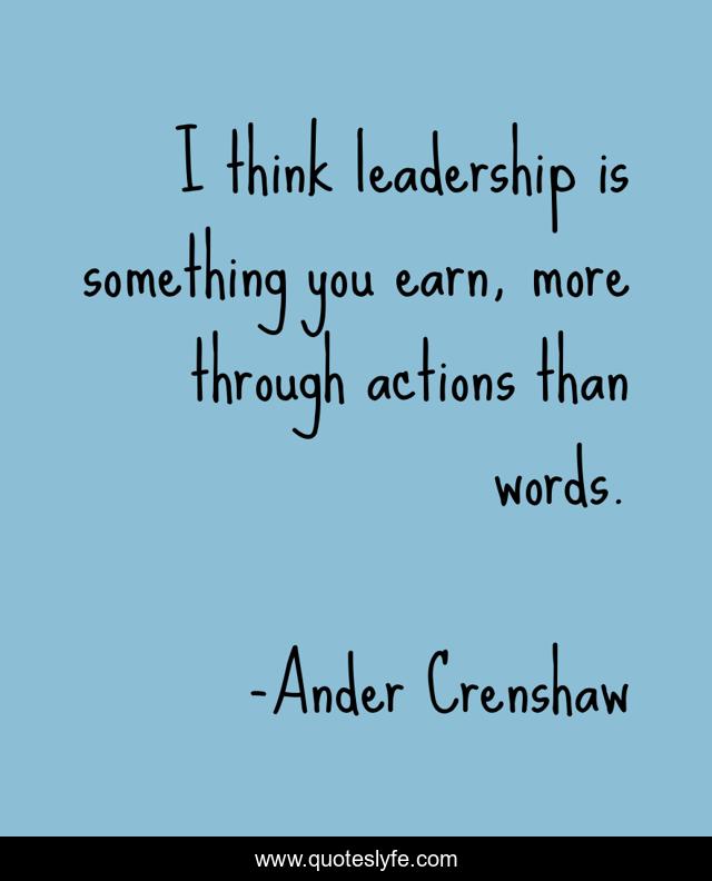 This page presents the quote "I think leadership is something you earn, more through actions than words.". Author of this quote is Ander Crenshaw. This quote is about think, words,.