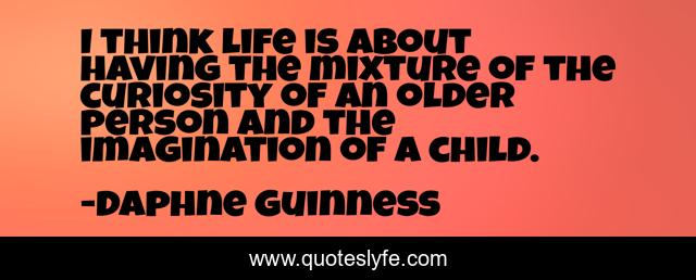 This page presents the quote "I think life is about having the mixture of the curiosity of an older person and the imagination of a child.". Author of this quote is Daphne Guinness. This quote is about life, curiosity, child,.