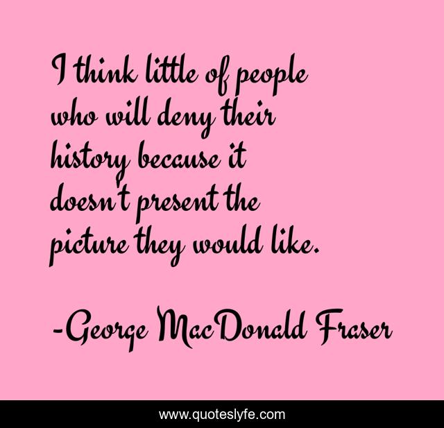 This page presents the quote "I think little of people who will deny their history because it doesn't present the picture they would like.". Author of this quote is George MacDonald Fraser. This quote is about philosophy, experience, reason, values, politics, history,.