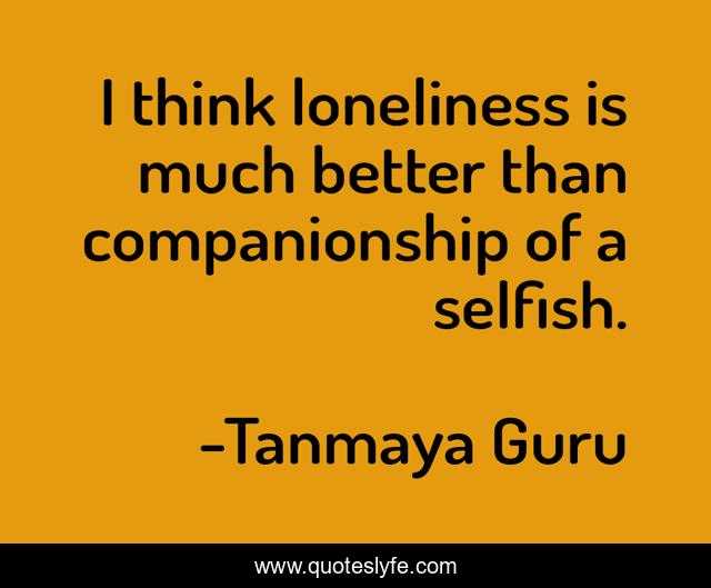 This page presents the quote "I think loneliness is much better than companionship of a selfish.". Author of this quote is Tanmaya Guru. .