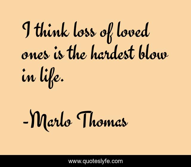 This page presents the quote "I think loss of loved ones is the hardest blow in life.". Author of this quote is Marlo Thomas. This quote is about loss, life, think,.