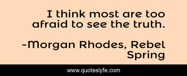 This page presents the quote "I think most are too afraid to see the truth.". Author of this quote is Morgan Rhodes, Rebel Spring. This quote is about fear, truth,.