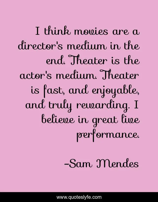 I think movies are a director's medium in the end. Theater is the actor's medium. Theater is fast, and enjoyable, and truly rewarding. I believe in great live performance.