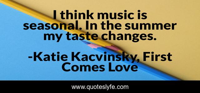 This page presents the quote "I think music is seasonal. In the summer my taste changes.". Author of this quote is Katie Kacvinsky, First Comes Love. This quote is about young-adult, first-comes-love, young-adult-fiction, young-adult-romance, katie-kacvinsky,.