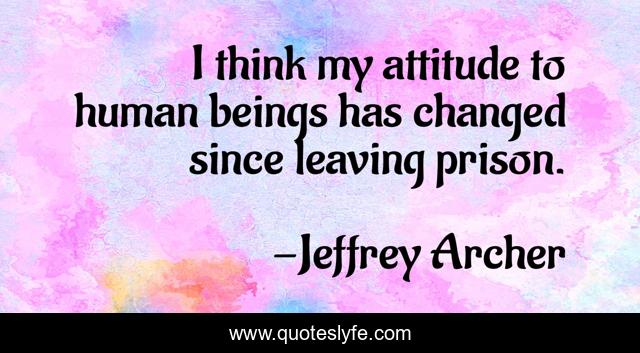 This page presents the quote "I think my attitude to human beings has changed since leaving prison.". Author of this quote is Jeffrey Archer. This quote is about prison, think, leaving,.