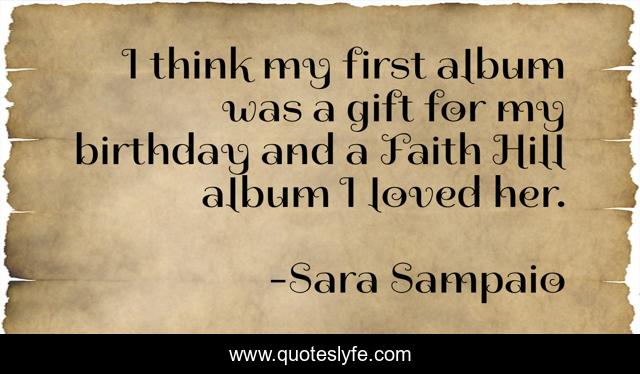 This page presents the quote "I think my first album was a gift for my birthday and a Faith Hill album I loved her.". Author of this quote is Sara Sampaio. This quote is about faith, think, gift,.