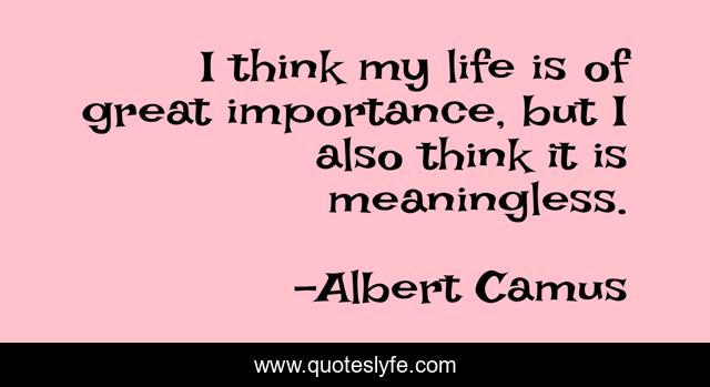 This page presents the quote "I think my life is of great importance, but I also think it is meaningless.". Author of this quote is Albert Camus. This quote is about absurdism, philosophy-of-life, philosophy, absurd, musings,.