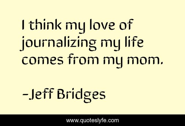 This page presents the quote "I think my love of journalizing my life comes from my mom.". Author of this quote is Jeff Bridges. This quote is about life, my life, love, affection,.