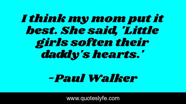 This page presents the quote "I think my mom put it best. She said, 'Little girls soften their daddy's hearts.'". Author of this quote is Paul Walker. This quote is about little girls, best, mom,.