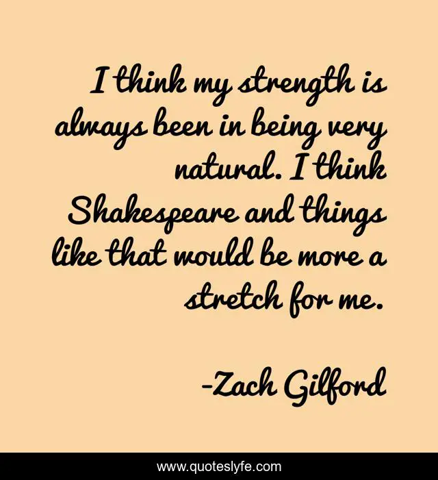This page presents the quote "I think my strength is always been in being very natural. I think Shakespeare and things like that would be more a stretch for me.". Author of this quote is Zach Gilford. This quote is about me, natural, think,.