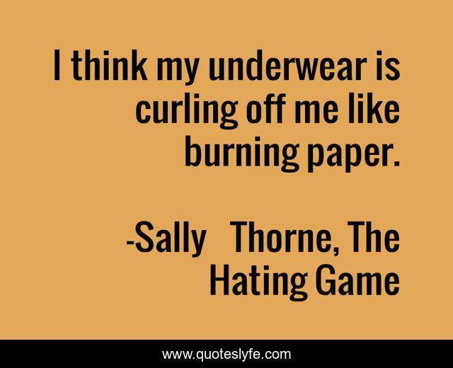 This page presents the quote "I think my underwear is curling off me like burning paper.". Author of this quote is Sally Thorne, The Hating Game. .