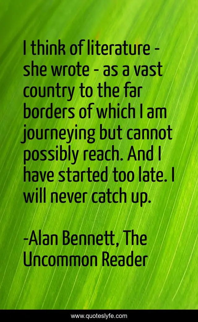 "Alan Bennett, The Uncommon Reader Quotes." Quoteslyfe.com, 2025. Mon. 08 Dec. 2025. <https://www.quoteslyfe.com/quote/I-think-of-literature-she-wrote-as-112012>.