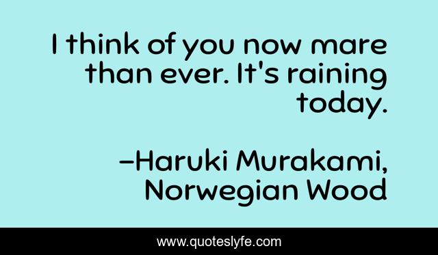 "Haruki Murakami, Norwegian Wood Quotes." Quoteslyfe.com, 2025. Mon. 08 Dec. 2025. <https://www.quoteslyfe.com/quote/I-think-of-you-now-mare-than-241097>.