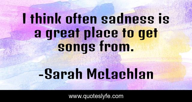 This page presents the quote "I think often sadness is a great place to get songs from.". Author of this quote is Sarah McLachlan. This quote is about great, sadness, think,.