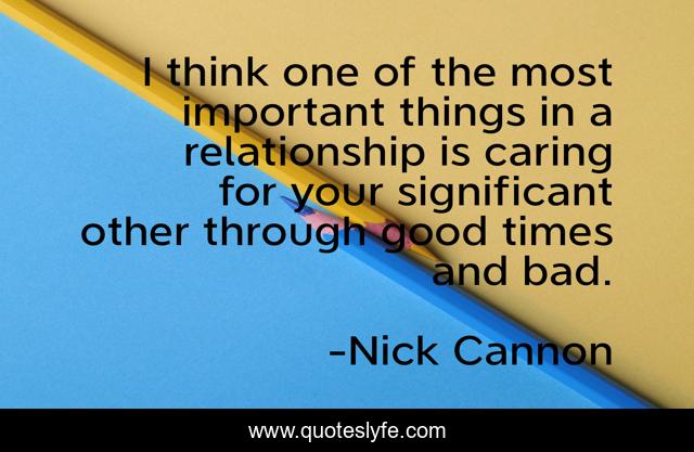 This page presents the quote "I think one of the most important things in a relationship is caring for your significant other through good times and bad.". Author of this quote is Nick Cannon. This quote is about caring, relationship,.