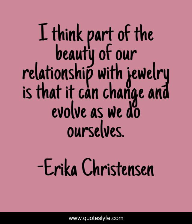 This page presents the quote "I think part of the beauty of our relationship with jewelry is that it can change and evolve as we do ourselves.". Author of this quote is Erika Christensen. This quote is about change, relationship,.