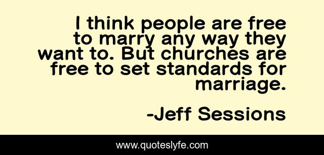 This page presents the quote "I think people are free to marry any way they want to. But churches are free to set standards for marriage.". Author of this quote is Jeff Sessions. This quote is about free, people,.