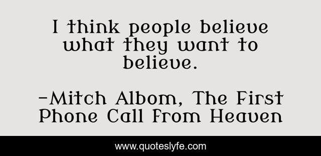 "Mitch Albom, The First Phone Call from Heaven Quotes." Quoteslyfe.com, 2025. Tue. 09 Dec. 2025. <https://www.quoteslyfe.com/quote/I-think-people-believe-what-they-want-160287>.