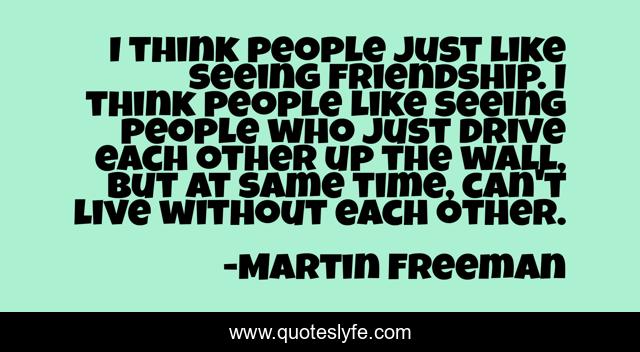 This page presents the quote "I think people just like seeing friendship. I think people like seeing people who just drive each other up the wall, but at same time, can't live without each other.". Author of this quote is Martin Freeman. This quote is about live, time, people,.
