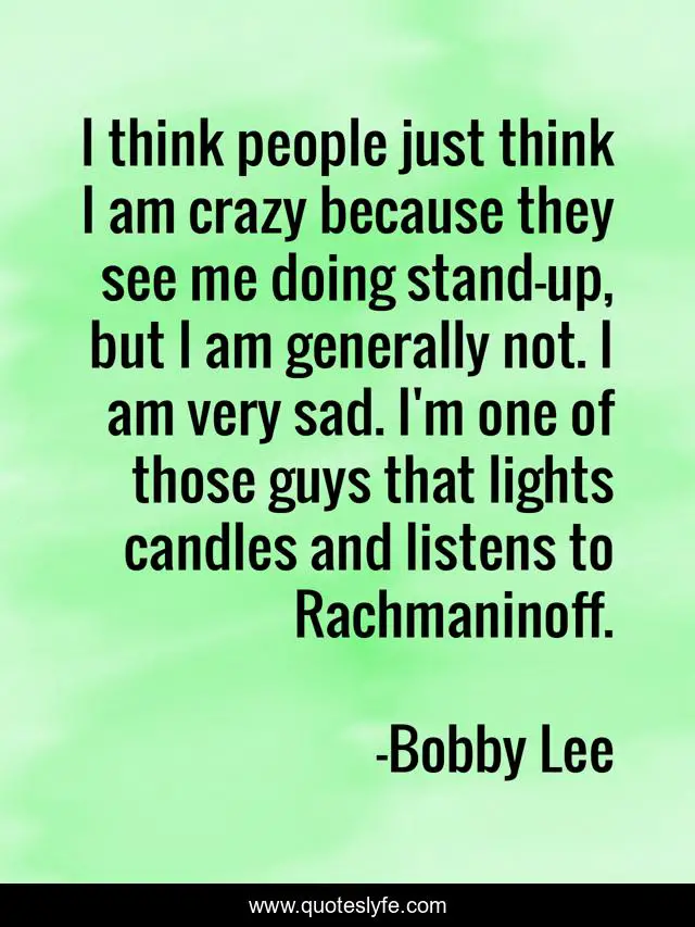 This page presents the quote "I think people just think I am crazy because they see me doing stand-up, but I am generally not. I am very sad. I'm one of those guys that lights candles and listens to Rachmaninoff.". Author of this quote is Bobby Lee. This quote is about me, crazy,.