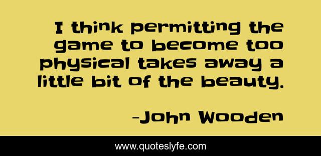 This page presents the quote "I think permitting the game to become too physical takes away a little bit of the beauty.". Author of this quote is John Wooden. This quote is about game, little, think,.