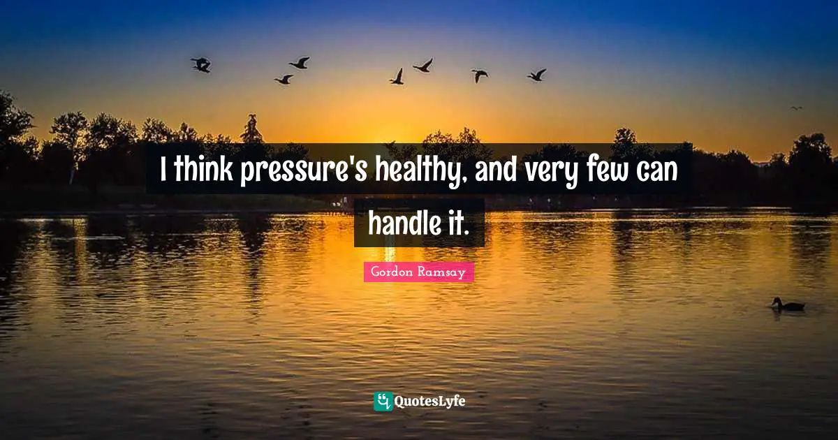 This page presents the quote "I think pressure's healthy, and very few can handle it.". Author of this quote is Gordon Ramsay. This quote is about pressure, thinking, handle, healthy,.