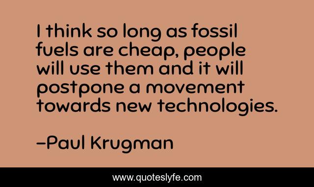 This page presents the quote "I think so long as fossil fuels are cheap, people will use them and it will postpone a movement towards new technologies.". Author of this quote is Paul Krugman. This quote is about think, long, people,.