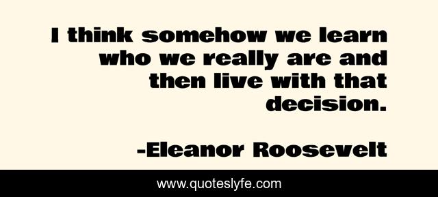 This page presents the quote "I think somehow we learn who we really are and then live with that decision.". Author of this quote is Eleanor Roosevelt. This quote is about self, knowledge,.