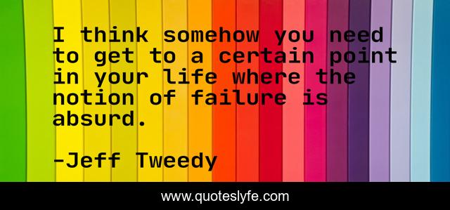 This page presents the quote "I think somehow you need to get to a certain point in your life where the notion of failure is absurd.". Author of this quote is Jeff Tweedy. This quote is about life, think,.