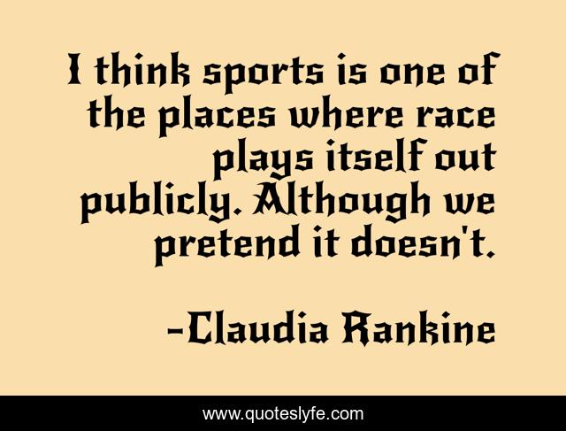 This page presents the quote "I think sports is one of the places where race plays itself out publicly. Although we pretend it doesn't.". Author of this quote is Claudia Rankine. This quote is about race, think, places,.