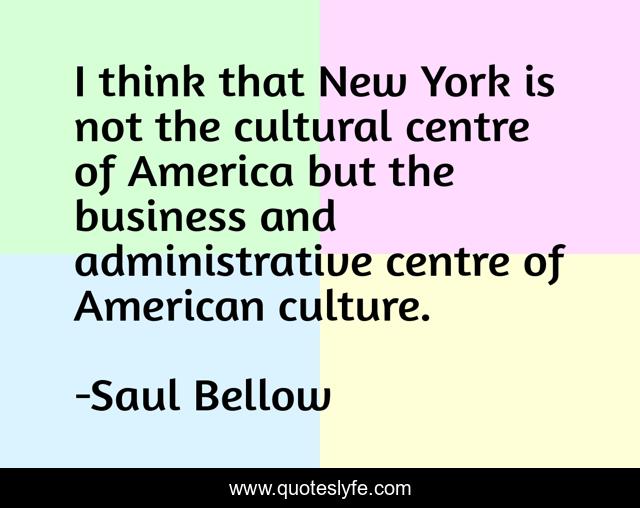 This page presents the quote "I think that New York is not the cultural centre of America but the business and administrative centre of American culture.". Author of this quote is Saul Bellow. This quote is about america, americans,.