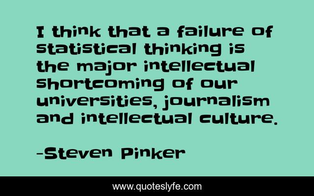 This page presents the quote "I think that a failure of statistical thinking is the major intellectual shortcoming of our universities, journalism and intellectual culture.". Author of this quote is Steven Pinker. This quote is about thinking, culture,.