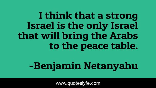 This page presents the quote "I think that a strong Israel is the only Israel that will bring the Arabs to the peace table.". Author of this quote is Benjamin Netanyahu. This quote is about bring, strong, think,.