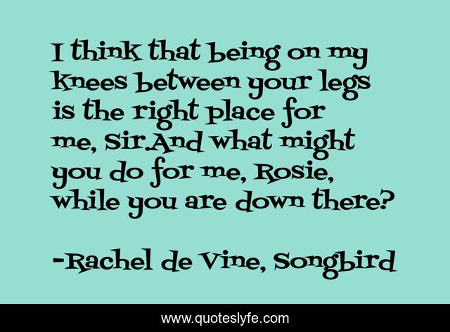 This page presents the quote "I think that being on my knees between your legs is the right place for me, Sir.And what might you do for me, Rosie, while you are down there?". Author of this quote is Rachel de Vine, Songbird. .