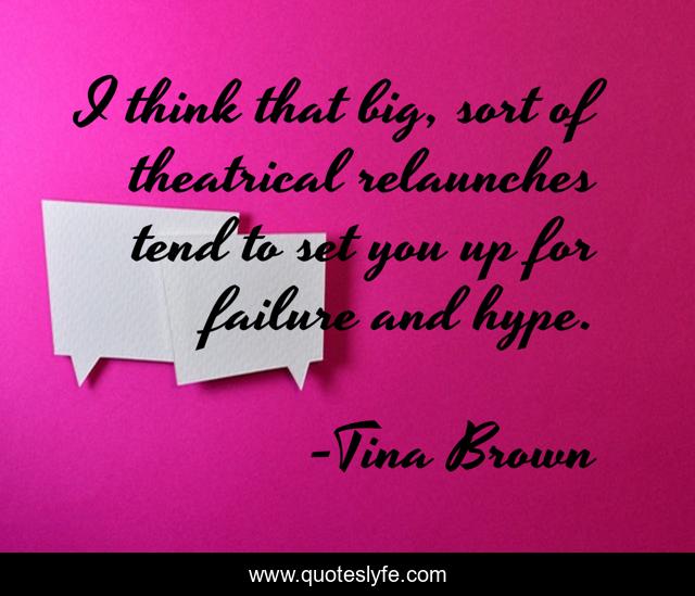 This page presents the quote "I think that big, sort of theatrical relaunches tend to set you up for failure and hype.". Author of this quote is Tina Brown. This quote is about hype, think,.