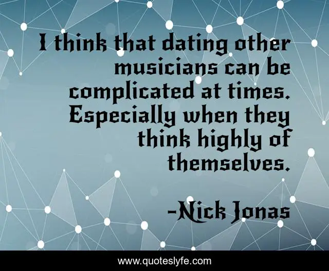 This page presents the quote "I think that dating other musicians can be complicated at times. Especially when they think highly of themselves.". Author of this quote is Nick Jonas. This quote is about musicians, think,.