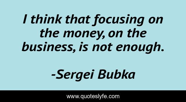This page presents the quote "I think that focusing on the money, on the business, is not enough.". Author of this quote is Sergei Bubka. This quote is about enough, think, business,.