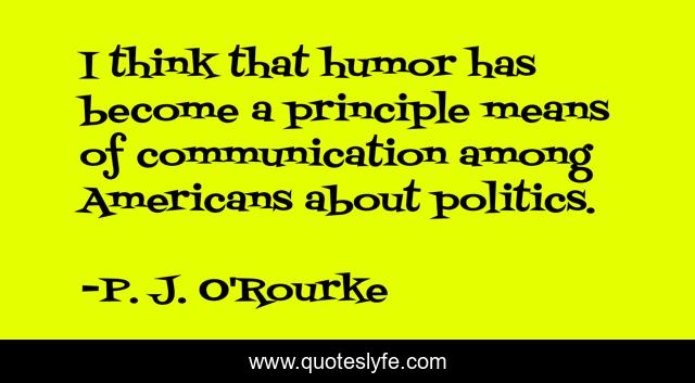 This page presents the quote "I think that humor has become a principle means of communication among Americans about politics.". Author of this quote is P. J. O'Rourke. This quote is about communication, politics,.