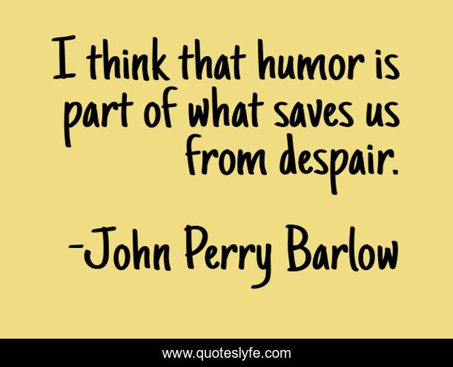 This page presents the quote "I think that humor is part of what saves us from despair.". Author of this quote is John Perry Barlow. This quote is about part, think, despair,.