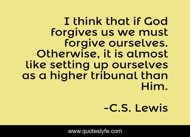 This page presents the quote "I think that if God forgives us we must forgive ourselves. Otherwise, it is almost like setting up ourselves as a higher tribunal than Him.". Author of this quote is C.S. Lewis. .