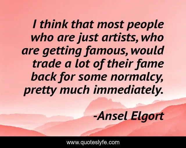 This page presents the quote "I think that most people who are just artists, who are getting famous, would trade a lot of their fame back for some normalcy, pretty much immediately.". Author of this quote is Ansel Elgort. This quote is about people, think, fame,.