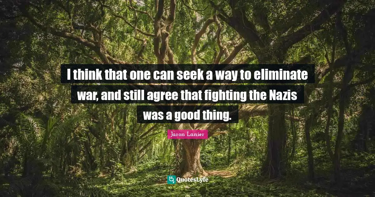 This page presents the quote "I think that one can seek a way to eliminate war, and still agree that fighting the Nazis was a good thing.". Author of this quote is Jaron Lanier. This quote is about way, war, thinking, fighting, agree,.