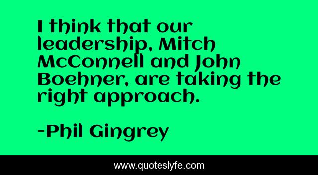 This page presents the quote "I think that our leadership, Mitch McConnell and John Boehner, are taking the right approach.". Author of this quote is Phil Gingrey. This quote is about right, approach, think,.