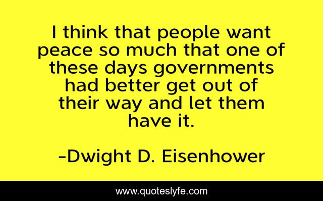 This page presents the quote "I think that people want peace so much that one of these days governments had better get out of their way and let them have it.". Author of this quote is Dwight D. Eisenhower. .