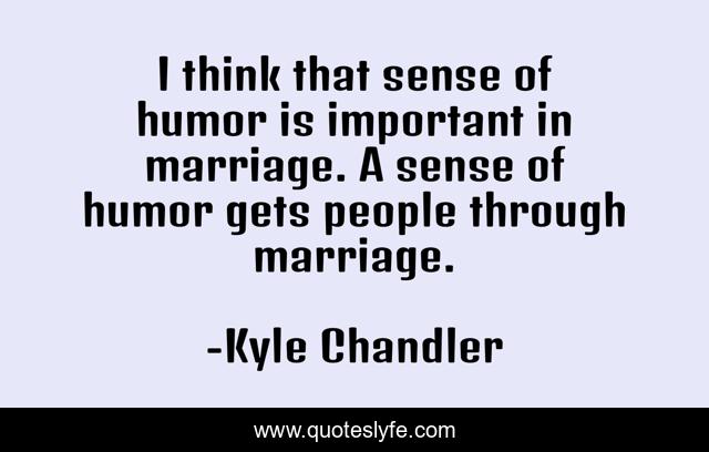 This page presents the quote "I think that sense of humor is important in marriage. A sense of humor gets people through marriage.". Author of this quote is Kyle Chandler. This quote is about marriage, think, people,.