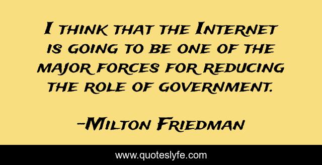 This page presents the quote "I think that the Internet is going to be one of the major forces for reducing the role of government.". Author of this quote is Milton Friedman. This quote is about stateless, free-market, anarcho-capitalism, freedom, statism, liberty, anarchy, libertarian, voluntaryism,.