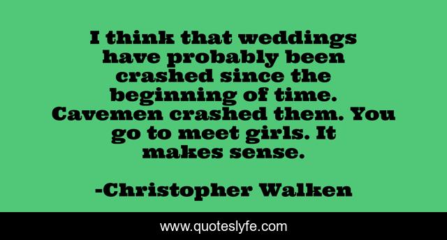 This page presents the quote "I think that weddings have probably been crashed since the beginning of time. Cavemen crashed them. You go to meet girls. It makes sense.". Author of this quote is Christopher Walken. This quote is about beginning, think, time,.