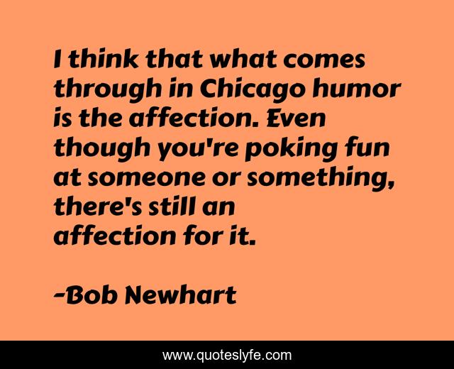 This page presents the quote "I think that what comes through in Chicago humor is the affection. Even though you're poking fun at someone or something, there's still an affection for it.". Author of this quote is Bob Newhart. This quote is about fun, think,.