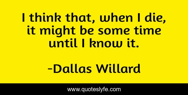 This page presents the quote "I think that, when I die, it might be some time until I know it.". Author of this quote is Dallas Willard. This quote is about new-life, immortality, regeneration,.