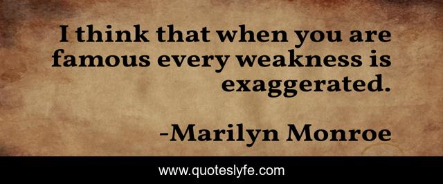This page presents the quote "I think that when you are famous every weakness is exaggerated.". Author of this quote is Marilyn Monroe. This quote is about weakness, think,.